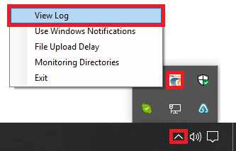 To view the log for the FileTrac Document Editor tool expand the ‘System Tray’ area on your taskbar, right-click on the FileTrac Document Editor icon, and select ‘View Log’.