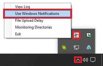 To use Windows Notifications expand the ‘System Tray’ area on your taskbar, right-click on the FileTrac Document Editor icon, and select ‘Use Windows Notifications’.