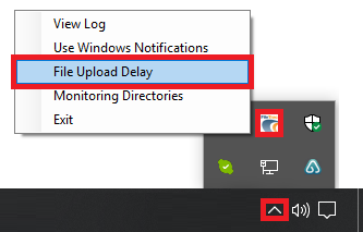 1. Expand the ‘System Tray’ area on your taskbar, right-click on the FileTrac Document Editor icon, and select ‘File Upload Delay’.