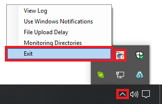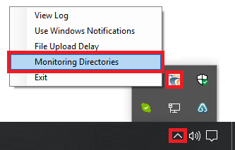 1. Expand the ‘System Tray’ area on your taskbar, right-click on the FileTrac Document Editor icon, and select ‘Monitoring Directories’.