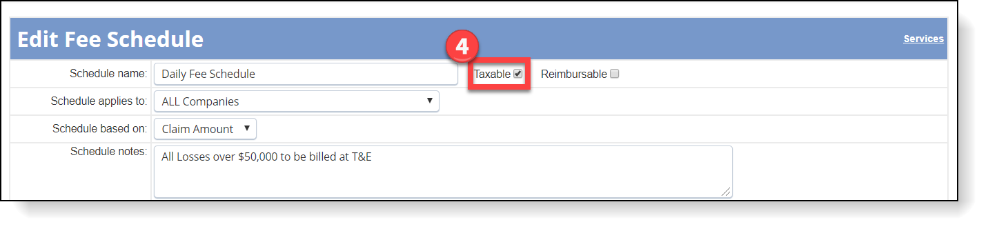 The final step is to make sure the fee schedules will have tax applied. To do this you will need to open or create each fee schedule that will be used in the taxable state to verify it is toggled on. To do so follow the instructions below: