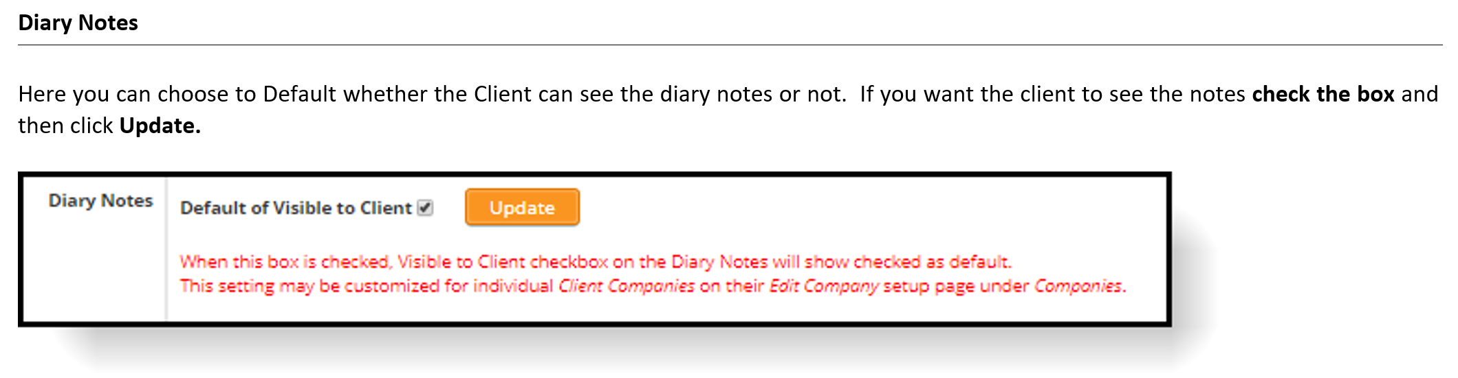 Diary Note Categories and Types