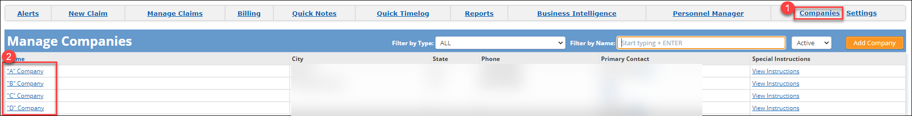 - Fee Schedules can also be created from within a Company (your client). Fee Schedules created under a 'Company' would only be visible for use in a claim for that particular company and can also be set to default for that company. To proceed with setting up a client specific custom fee schedule, proceed with the steps below.