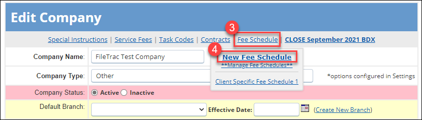 *Fee Schedules created in Companies are custom fee schedules that will only be available for the company it is being created for.