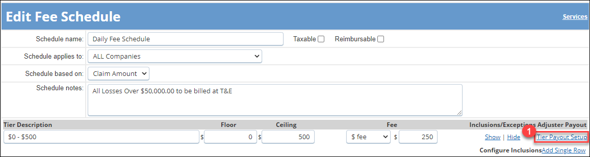 III. Setting up the Adjuster Payout for the Fee Schedule