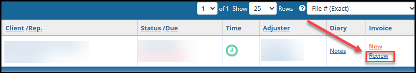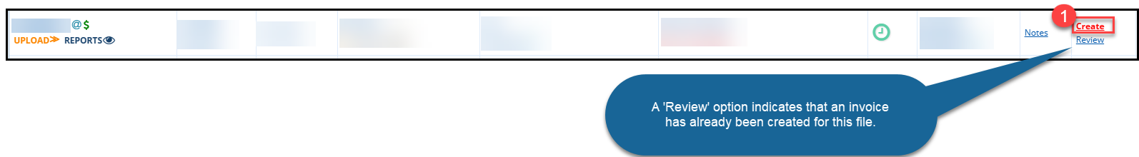 - Review- this will display when there is an invoice already created for the file