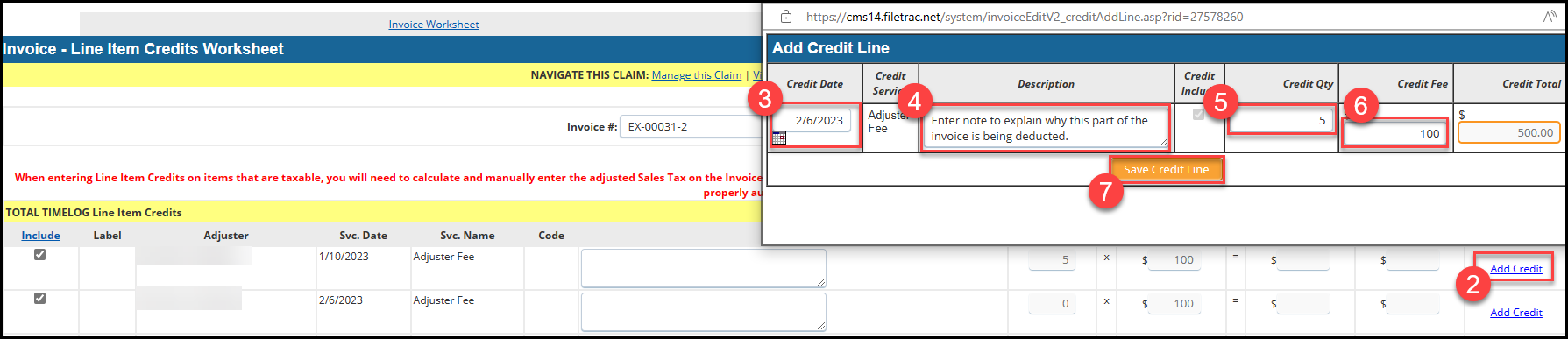B. Line Item Credits: The occasion may arise where your client is requiring that certain charges on your invoice be removed. If payment has already been made to the adjuster on an invoice, FileTrac will not allow you to void the invoice. In this case you will need to make the adjustment via a 'Line Item Credit'.
