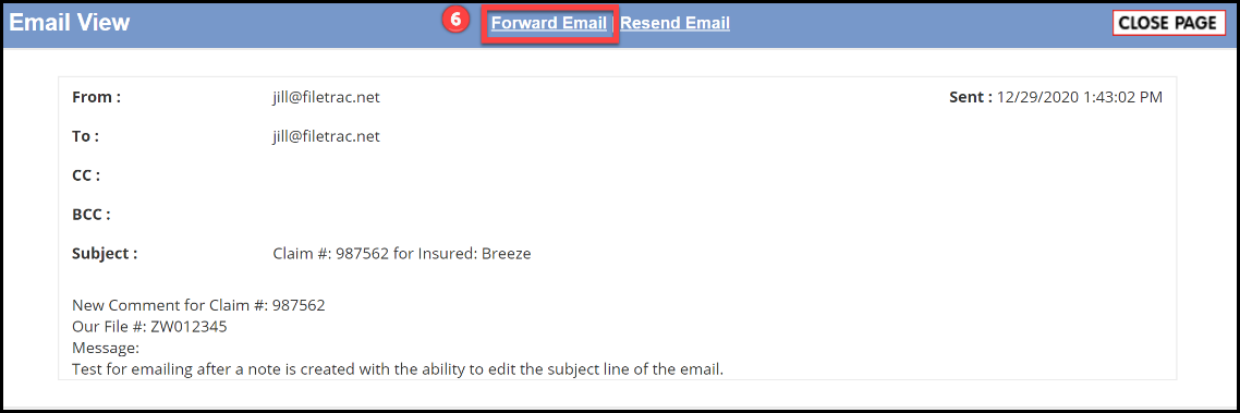 6. The message will be displayed in a pop-up box. Click on Forward Email in the upper blue bar